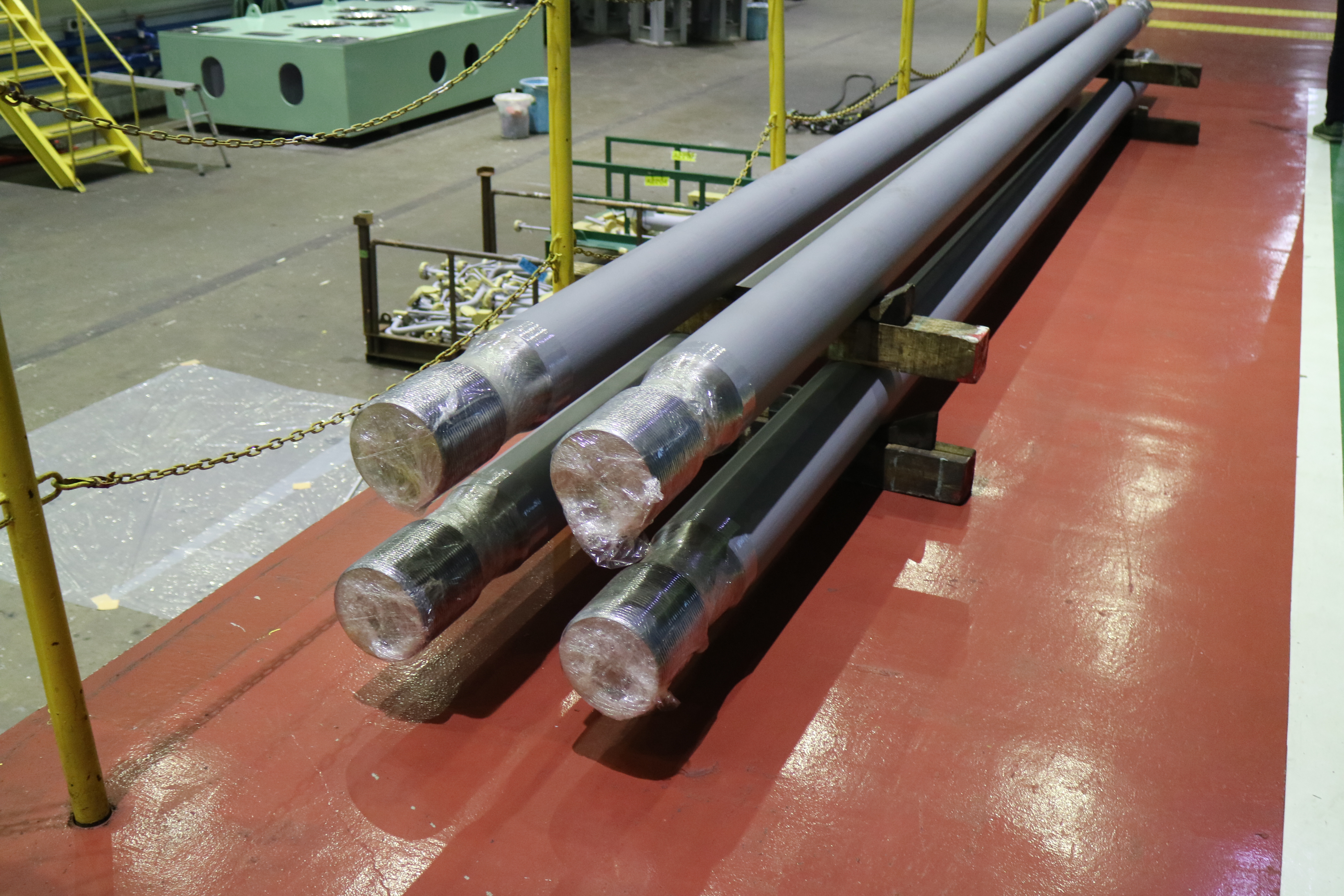 The press is triple-layered, with a top (crown), a middle (upright), and a base (bed) which is underground. Each of the four pillars supporting the press has a gigantic 11-meter-long bar that is 250 mm in diameter, joining the three layers to prevent the press from deforming under the strong forces involved.