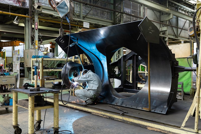 In order to achieve the high level of performance required for effective snowplowing, parts are manufactured in-house, except for a few such as engines and tires, making NICHIJO a finished-product manufacturer with high insourcing capability. At the division where the auger’s helical blade is produced, a special device is used to machine thick steel plates into a helical shape and the blade is welded onto the unit. The chassis of the vehicle is also assembled in-house and even the driver's seat mat is manufactured by the company.