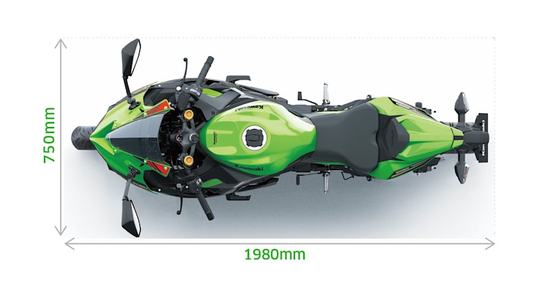 In terms of the width of the cowling , excluding the mirrors and handlebars, the ZX-25R is only four millimeters wider than models with two-cylinder engines, making easy the transition from a two-cylinder to a four-cylinder machine. Another feature is a riding position that makes it unnecessary to lean forward excessively in order to achieve excellent maneuverability. Its slim fuel tank enhances the sense of “oneness” with the bike when gripping with the knees.