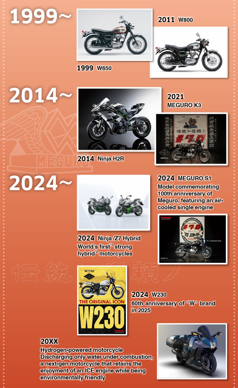 *1 World's first mass-produced motorcycle from a major manufacturer (excluding scooters). As of October 6, 2023, according to Kawasaki Motors, Ltd.