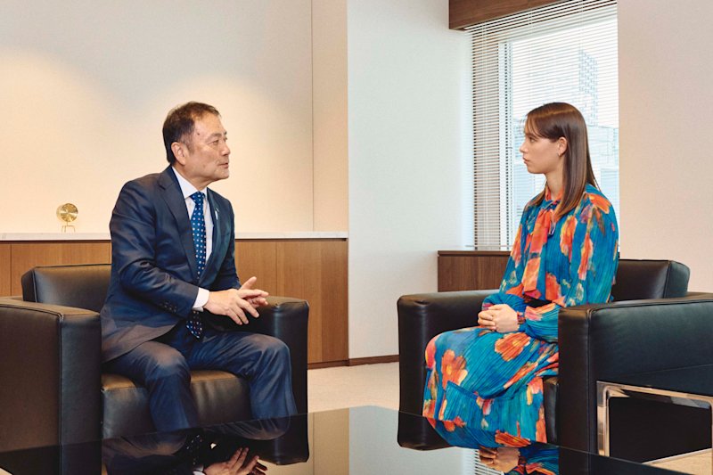 This article reports on a conversation between Chairman of the Board of Kawasaki Heavy Industries Yoshinori Kanehana, who also served as a Co-Chair of the Hydrogen Council, and model and TV personality Naomi Trauden, who appears in the Kawasaki Hydrogen College video series.