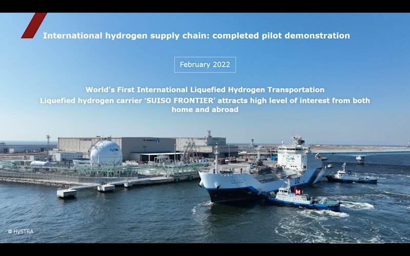 In terms of the commercial scale development, efforts are being made towards achieving critical mass for commercial operation, including the February 2022 pilot project. Kawasaki will continue to evaluate the possibility of commercialization and make efforts to increase the size of the hydrogen transport vessel by 128 times and the receiving tank by 20 times. Development of commercial-scale equipment is underway at Kawasaki.