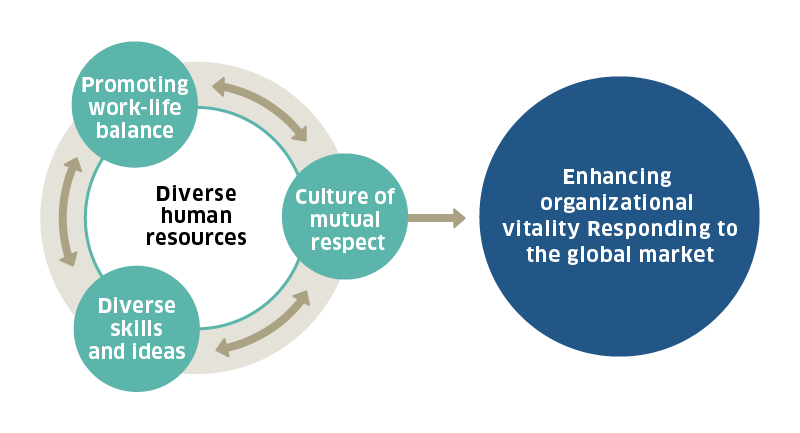 It is important to understand that it is not just about the presence of diverse people; the concept also entails establishing systems and mechanisms to enable diverse people to demonstrate their abilities fully, and fostering a culture that supports this. A workplace where everyone can work to their potential leads to increased motivation and productivity for each individual and, in turn, becomes an engine for a company to change and evolve.