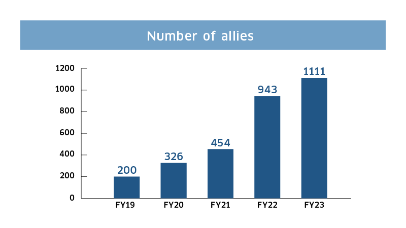 Currently, the number of allies is approximately 1,100 people. Making the ally program visible is leading to improvements in the workplace environment and fostering peace of mind for LGBTQ+ people.