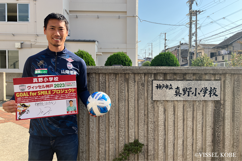 Since 2010, we have been continuing the “Goal for Smile Project,” in which we donate four soccer balls to elementary schools in Kobe for every goal scored in Vissel Kobe’s official matches (league matches, league cup matches, and Emperor’s Cup). My hometown is Hiroshima, so I grew up having that kind of experience with the Sanfrecce Hiroshima soccer players coming to my school to teach and play soccer with us kids. It was a truly irreplaceable experience to be able to play soccer with professional players, and it was what inspired me to become a soccer player myself. That’s why I feel like I want to continue this activity.