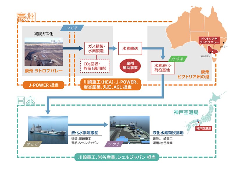 豪州ポーションは川崎重工の他、岩谷産業、J-POWER、丸紅、住友商事、オーストラリアを代表するエネルギー大手企業、AGLの6社がコンソーシアムを組んでいます。