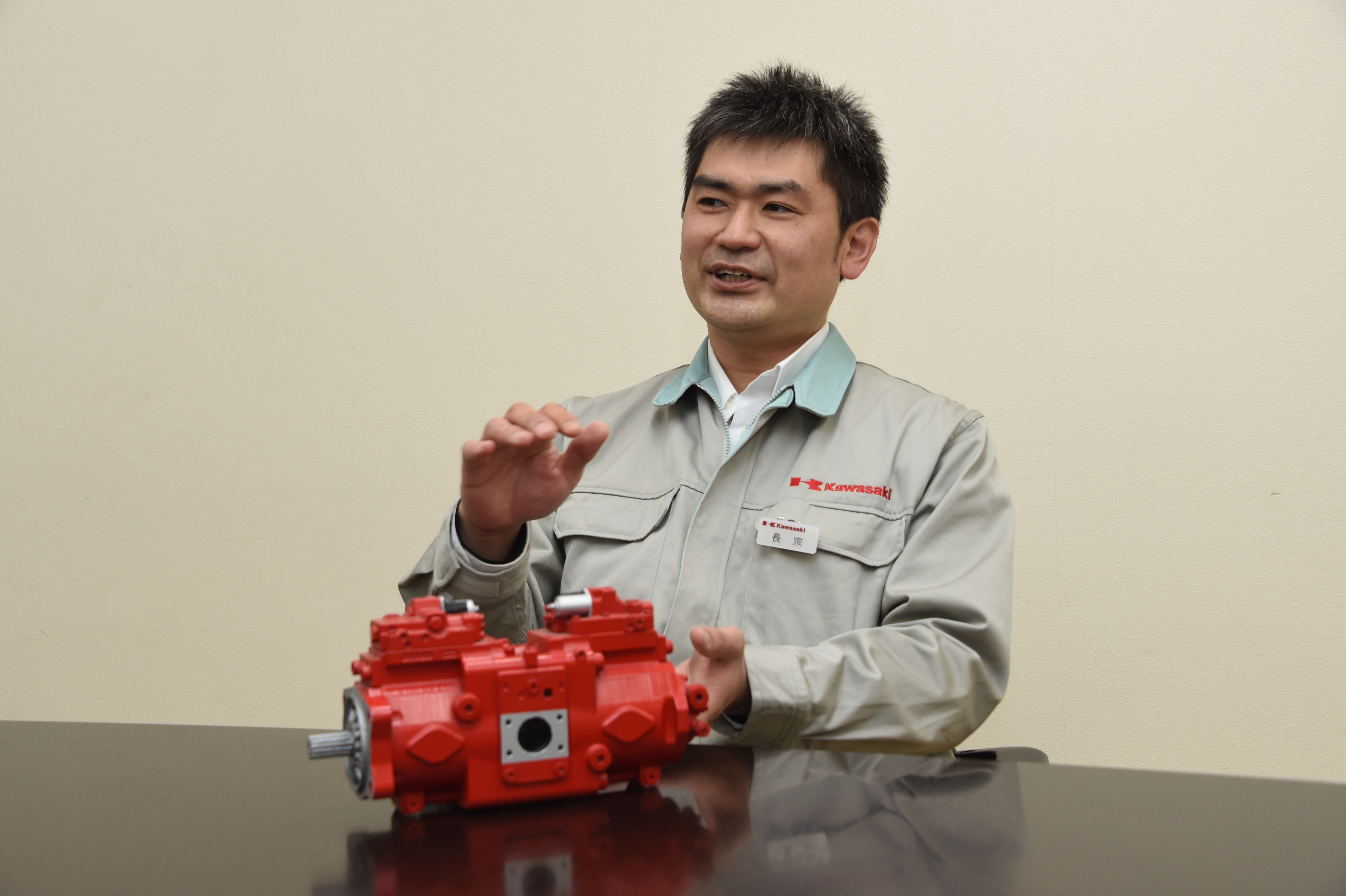 今回の開発では耐久性についてかなり多くの要求をさせていただきました。ショベルにとってポンプは心臓です。エンジンが動いていようが、ポンプが壊れてしまうと、何の動作もできなくなってしまうだけではなく、壊れた部品が油に交じるため、油圧ポンプ周辺の部品を道連れに壊してしまいます。だからこそ一番壊れると困るパーツであり、その耐久性はマーケットの評価に影響を及ぼすため、私たちとしては新モデルが出るたびに、従来モデル以上の耐久性を目標に設定しています。現在のところ耐久性とともにコスト・スペックを高い次元で両立する油圧ポンプのベンダーさんは他におらず、結果的に川崎重工さんが当社の主要ベンダーとなっています。