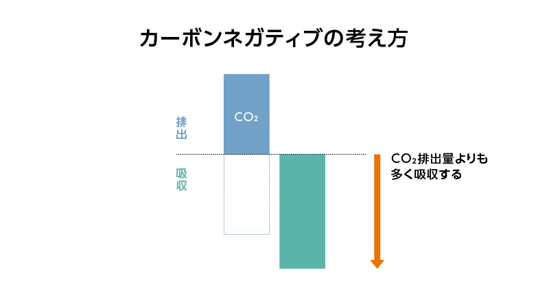 カーボンニュートラルが排出量と吸収量の差し引きゼロであるのに対して、吸収量が排出量を上回る状態です。