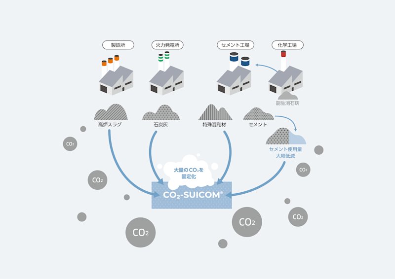 ②鹿島建設のCO2-SUICOM®(シーオーツースイコム)