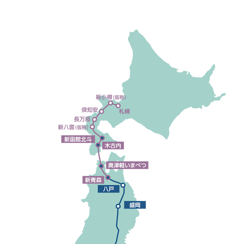 悲願の新幹線。そう呼ばれて久しかった北海道新幹線が、北の大地を走っています。北海道新幹線は、東北との広域連携による新しい観光需要創出、悪天候にも左右されない輸送手段の確保、交流人口の増大といった数々の期待を背負って発進しました。空路に比べて環境負荷量が少ない“地球に優しい交通機関”であることも、市民権を得ている理由のひとつでしょう。まず開通したのが、東北新幹線の新青森駅から新函館北斗駅までの全長約149km。最高速度260km/hで走り、東京〜新函館北斗間を最短4時間2分でつなぎます。現在は、東京〜新函館北斗間を10往復、仙台・盛岡・新青森〜新函館北斗間をそれぞれ1往復、1日合計13往復で運行しています。