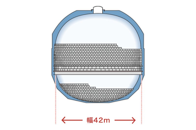 −162℃のLNGを収納すると、低温収縮でタンクの直径がおよそ150mm縮みます。しかし、タンクを支えているスカートの上部も冷やされて自然に収縮し、タンクの収縮を無理なく吸収することができるのです。