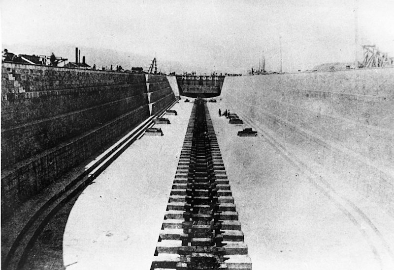 船の材質が鉄から鋼へと遷移していた折、川崎正蔵はその機を逃さず「日本最初の鋼船」を竣工(1890年[明治23年])するなど、10年間で80隻の船を新造。1902年(明治35年)には、神戸港における最初の本格的な乾ドック(海から陸へ掘り込んだ一種の堀割で、船を入れたあと水門を閉めてポンプで排水し、船舶の修繕あるいは建造を行う)を築造しています。
