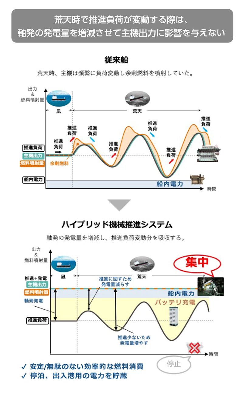 主機エンジンの変動負荷の減少も、ハイブリッドシステムのポテンシャルを証明した