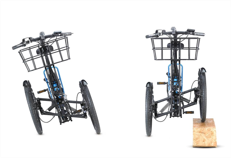 前二輪が車体の傾きに同調し傾く構造により、前二輪でありながら、二輪自転車に近い操縦感覚を実現。三輪ならではの安定感を享受できます。