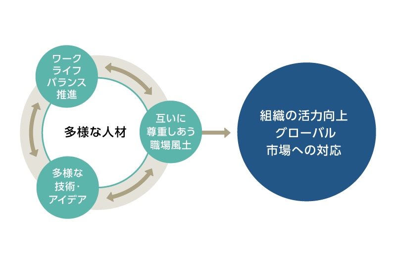 重要なのは、ただ「多様性」を掲げてさまざまな人財を集めるだけでは終わらず、多様な人財がそれぞれの能力を十分に発揮できる制度や仕組みの整備、文化の醸成などを行うことです。誰もが働きやすい職場環境は、一人一人の仕事へのモチベーションや生産性につながるほか、企業が進化を遂げつづけるエンジンにもなります。